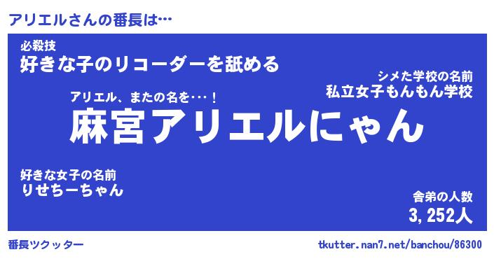 | 意味不明あだ名 | 『ペロリンアリエル』『永久保存アリエル』 |