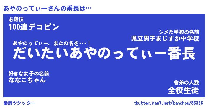 | ヒーロー風カッコイイあだ名 | 『スーパーアヤノッティー』 |