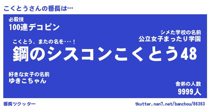 | 意味不明あだ名 | 『ペロリンこくとう』『永久保存こくとう』 |