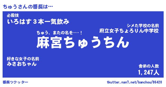 | ヒーロー風カッコイイあだ名 | 『スーパーチュウ』『ウルトラちゅうマン』 |