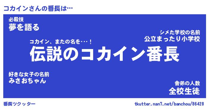 | 意味不明あだ名 | 『ペロリンコカイン』『永久保存コカイン』 |