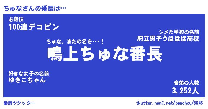| ヘコむあだ名 | 『ちゅにー』『つくし』『ちゅ太郎』 |