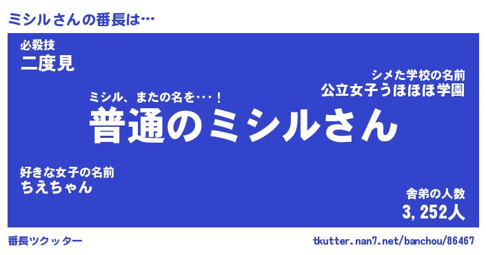 | ファンタジー風あだ名 | 『ミシフェル』『エターナルミシルー』 |