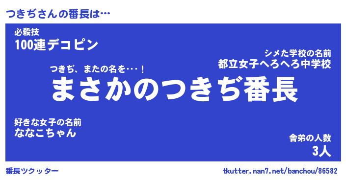 | ファンタジー風あだ名 | 『ツキフェル』『エターナルツキヂー』 |