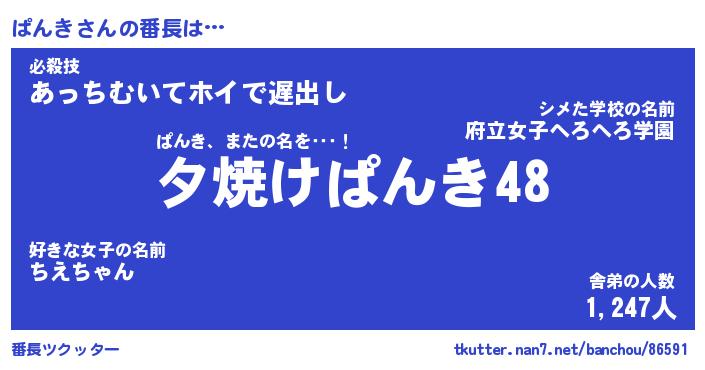 | 意味不明あだ名 | 『ペロリンぱんき』『ぱんきフォーエバー』 |