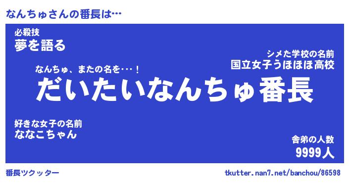 | ヒーロー風カッコイイあだ名 | 『スーパーナンチュ』『天弓騎士ナン』 |