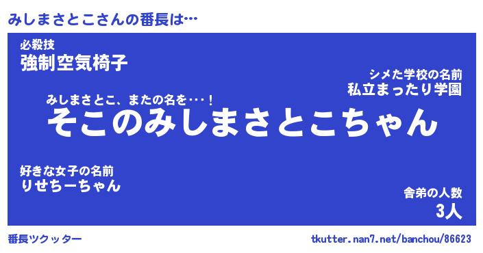 | ピコ太郎風あだ名 | 『ミコ一郎』『ピミ三郎』『ミシ六郎』 |