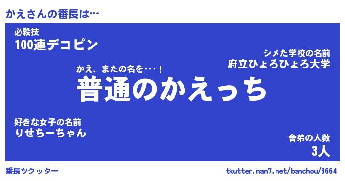 | ヒーロー風カッコイイあだ名 | 『スーパーカエ』『ウルトラかえマン』 |