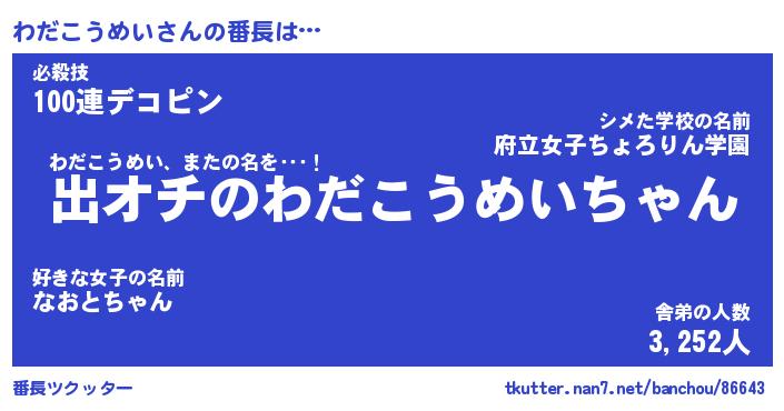 | 意味不明あだ名 | 『ペロリンわだこうめい』 |