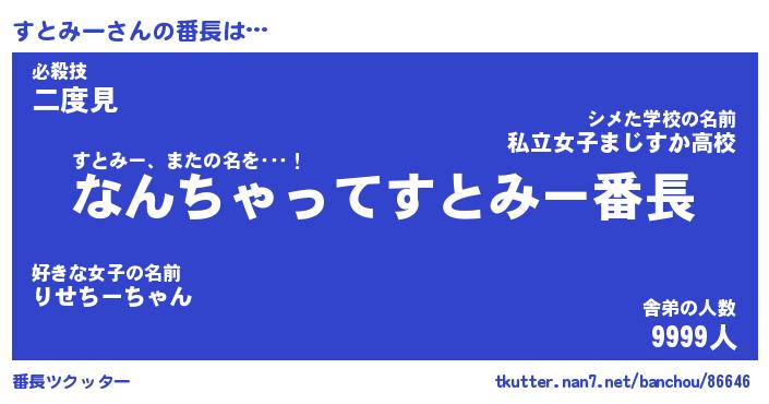 | 意味不明あだ名 | 『ペロリンすとみー』『永久保存すとみー』 |