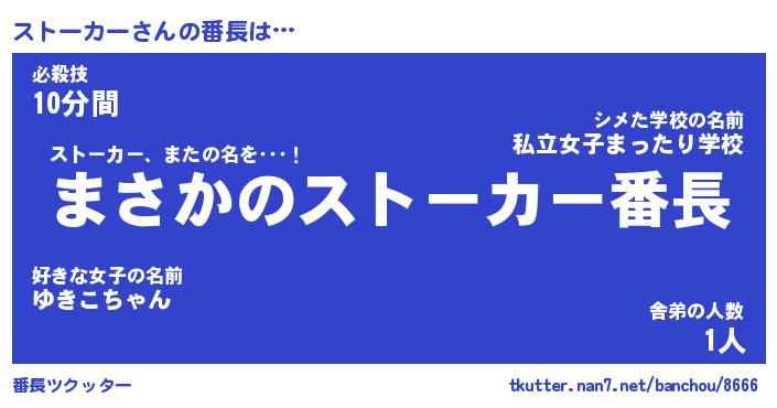| ファンタジー風あだ名 | 『ストフェル』『エターナルストーカーー』 |