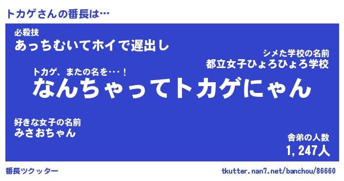 | ヘコむあだ名 | 『トカもー』『レバニラ』 |