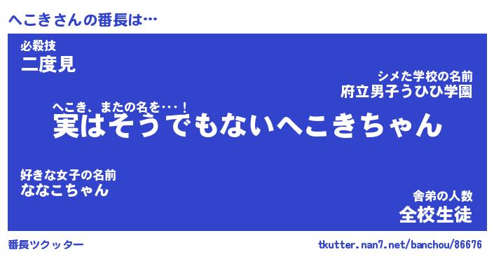 | 2回繰り返すあだ名 | 『へこへこ』『へへここ』『うずうず』 |