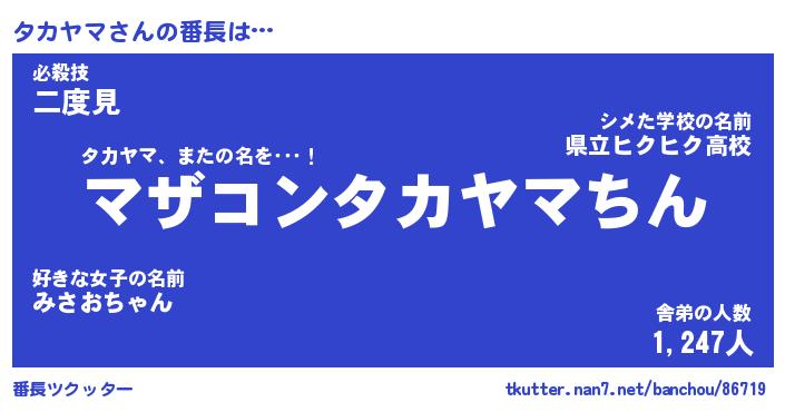 | 肩書あだ名 | 『タカヤマ店長』『タカヤマ国家主席』 |