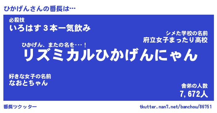 | 意味不明あだ名 | 『ペロリンひかげん』『永久保存ひかげん』 |