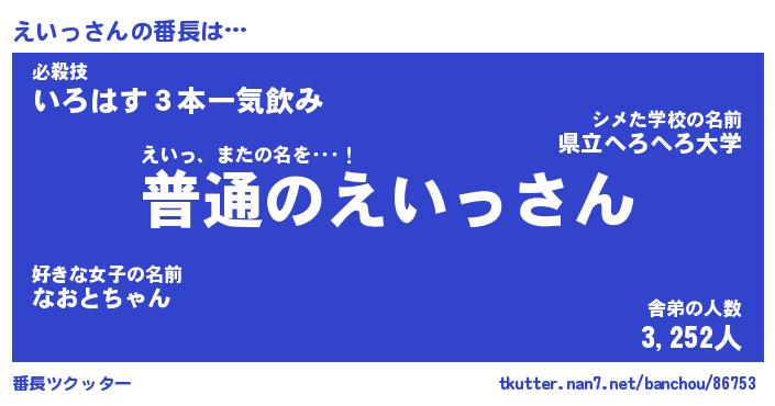 | ヘコむあだ名 | 『えいにゅー』『なまこ酢』 |