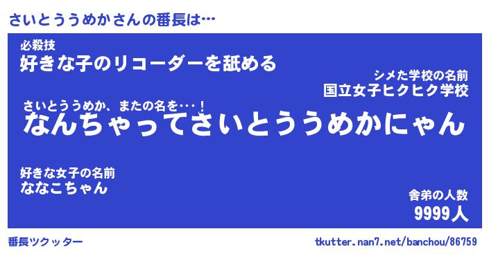 | 胡散臭い通販商品みたいなあだ名 | 『必ず成功する水晶球…その名も「さいとううめか」』 |