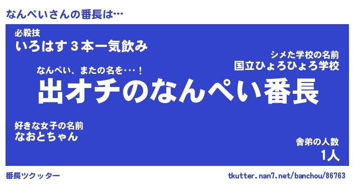 | 意味不明あだ名 | 『ペロリンなんぺい』『永久保存なんぺい』 |