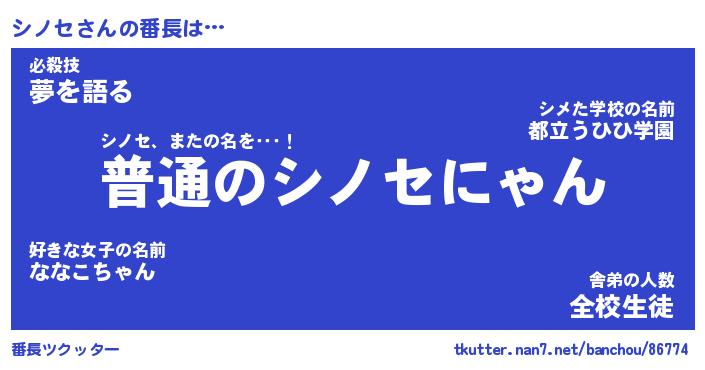 | ポケモン風あだ名 | 『シノチュウ』『シノセダネ』 |