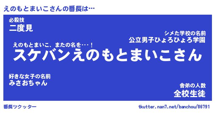 | ヒーロー風カッコイイあだ名 | 『スーパーエノモトマイコ』 |