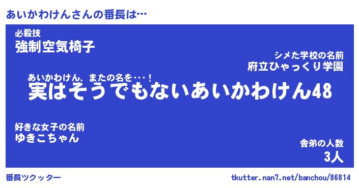 | 伝説のあだ名 | 『封印されしスナイパーあいかわけん』 |