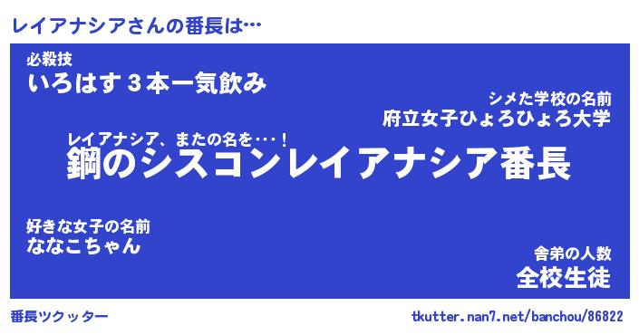 | ヘコむあだ名 | 『レイにゅー』『つくし』『レイを』 |