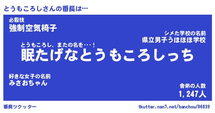 | ポケモン風あだ名 | 『トウチュウ』『トウモダネ』 |