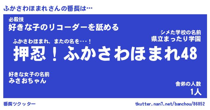 | 伝説のあだ名 | 『封印されしスナイパーふかさわほまれ』 |