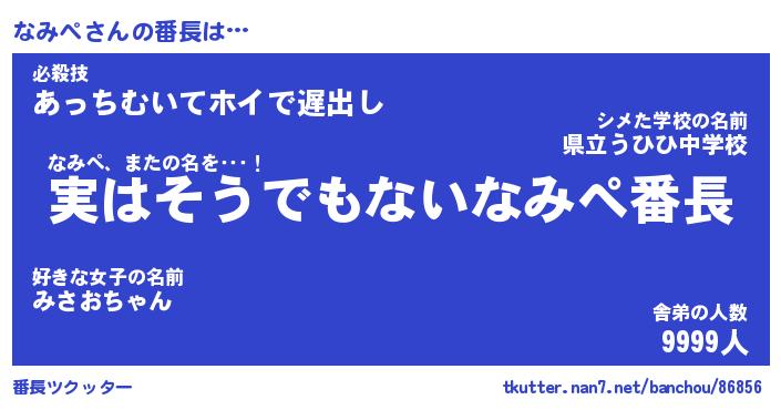 | ヒーロー風カッコイイあだ名 | 『スーパーナミペ』『ウルトラなみぺマン』 |