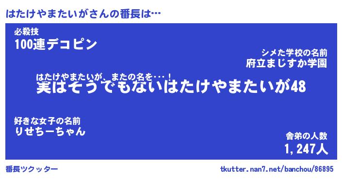| ヒーロー風カッコイイあだ名 | 『スーパーハタケヤマタイガ』 |