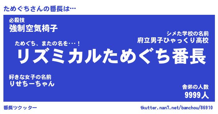 | 伝説のあだ名 | 『伝説のスナイパーためぐち』 |