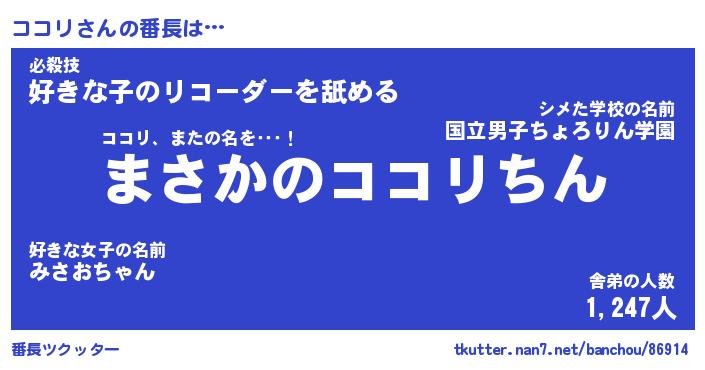 | 意味不明あだ名 | 『ペロリンココリ』『ココリフォーエバー』 |