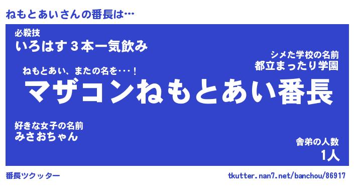 | ヘコむあだ名 | 『ねももー』『つくし』『ねもお』 |
