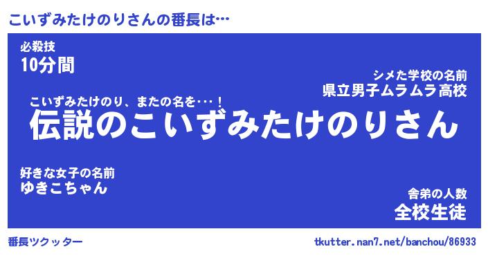 | 肩書あだ名 | 『こいずみたけのり御曹司』 |