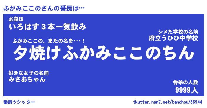 | ヒーロー風カッコイイあだ名 | 『スーパーフカミココノ』『天弓騎士フカ』 |