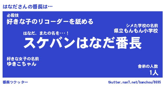 | 意味不明あだ名 | 『ペロリンはなだ』『はなだフォーエバー』 |