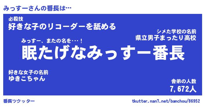 | 意味不明あだ名 | 『ペロリンみっすー』『永久保存みっすー』 |