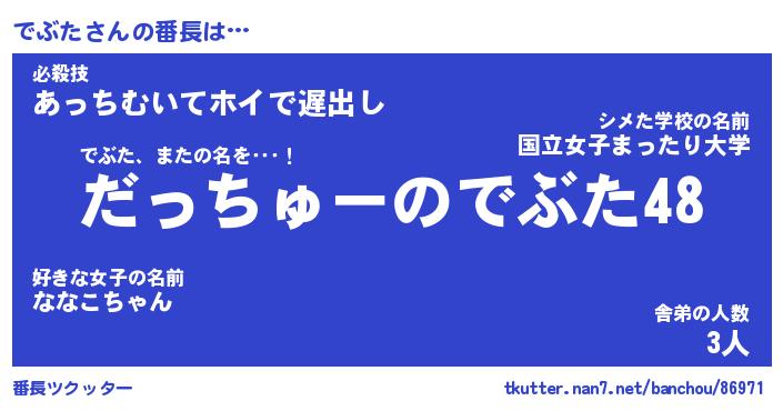 | 2回繰り返すあだ名 | 『でぶでぶ』『ででぶぶ』『ぼそぼそ』 |
