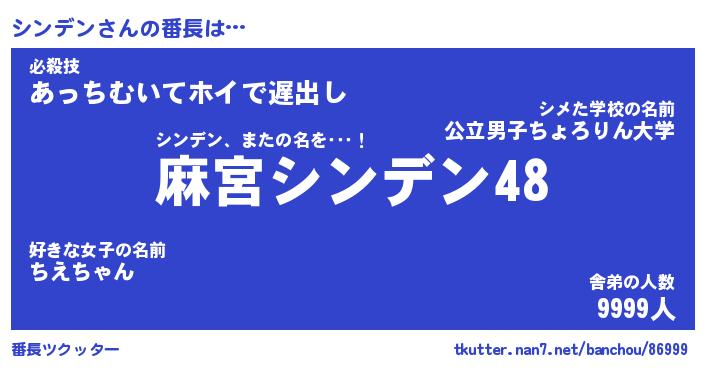 | 意味不明あだ名 | 『ペロリンシンデン』『永久保存シンデン』 |
