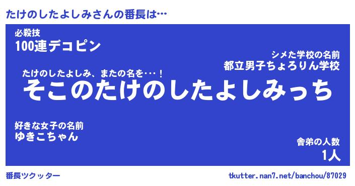 | ヘコむあだ名 | 『たけにー』『なまこ酢』『たけを』 |
