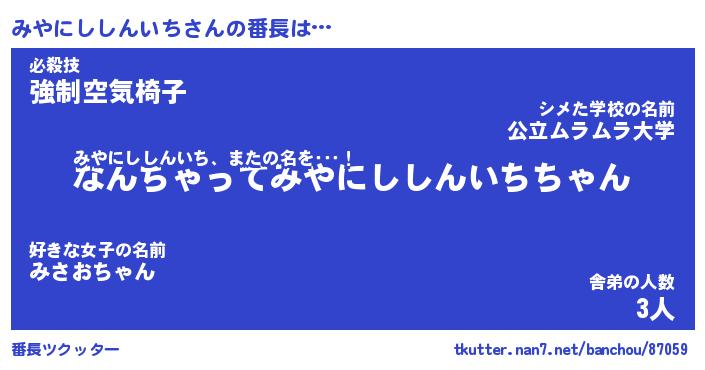 | 肩書あだ名 | 『みやにししんいち店長』 |