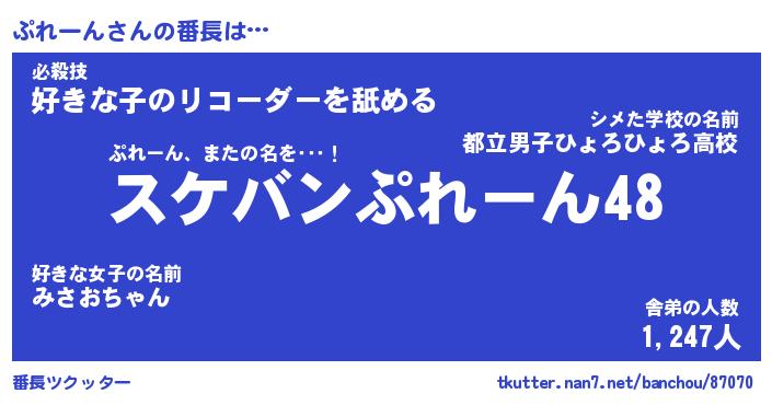 | 意味不明あだ名 | 『ペロリンぷれーん』『永久保存ぷれーん』 |