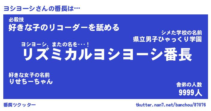 | ファンタジー風あだ名 | 『ヨシフェル』『エターナルヨシヨーシー』 |