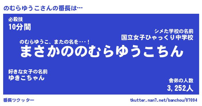 | 女子向けラノベタイトル風あだ名 | 『(仮)のむらゆうこのやんごとなき事情』 |