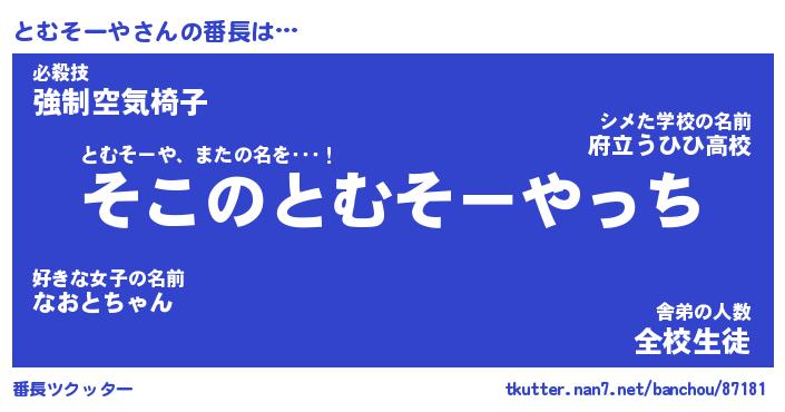 | 男性向けラノベタイトル風あだ名 | 『とむそーやの憂鬱』 |