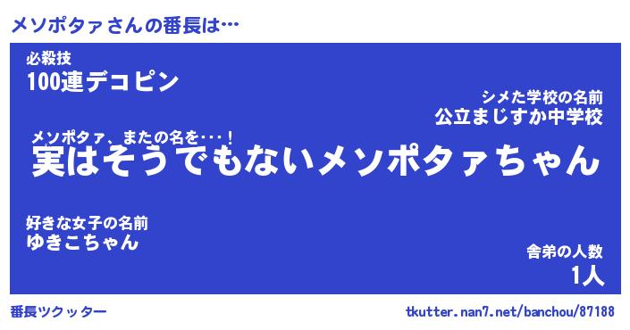 | ヘコむあだ名 | 『メソもー』『つくし』『メソお』 |