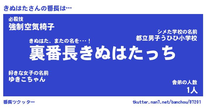| 肩書あだ名 | 『きぬはた店長』『きぬはた総理大臣』 |