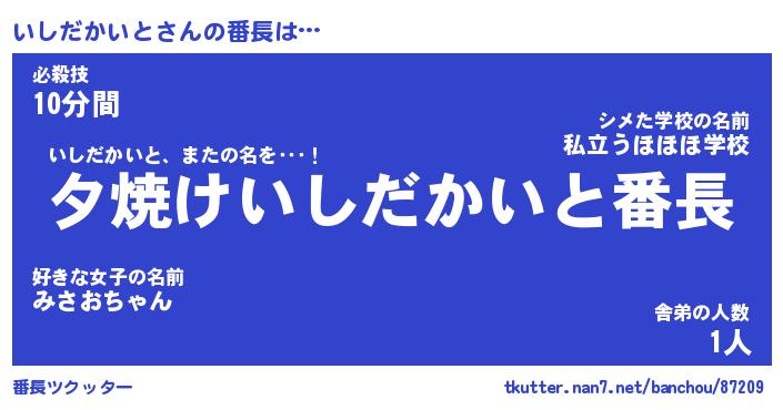 | 男性向けラノベタイトル風あだ名 | 『イシダカイトアートオンライン』 |
