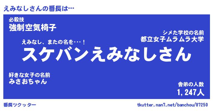 | 意味不明あだ名 | 『ペロリンえみなし』『永久保存えみなし』 |