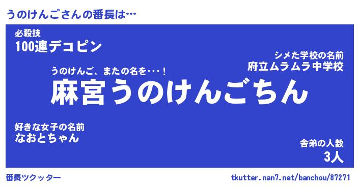 | ファンタジー風あだ名 | 『ウノフェル』『エターナルウノケンゴー』 |